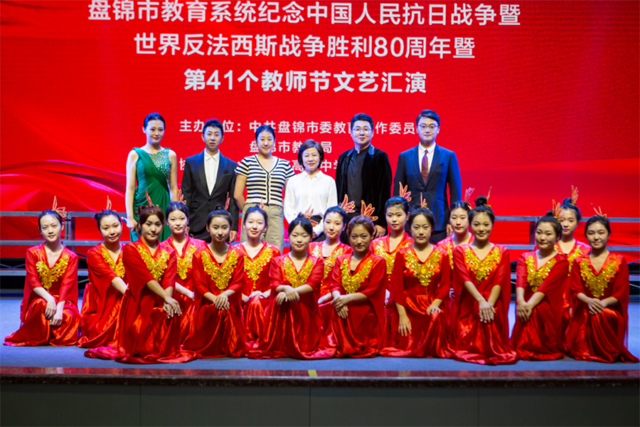 2025年9月10日,由中共盘锦市委教育工作委员会、盘锦市教育局主办的“师者如灯 德润桃李”——盘锦市教育系统纪念中国人民抗日战争暨世界反法西斯战争胜利八十周年暨第41个教师节文艺汇演,在盘锦市高级中学隆重举行。全市教育工作者齐聚一堂,共庆佳节,我校共有四名教师与十六名学生登台参演,学校党委副书记、校长宋锦出席本次活动。